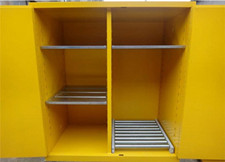上下對開門易燃品柜是易燃化學品儲存柜的一種,也叫易燃品柜,上下為對開門樣式,共四門,上下柜門裝置有全鋼三點聯動式門鎖,門鎖帶鎖鼻,可另加配掛鎖,實現雙鎖兩人管理,上下空間各配置一塊可調節鍍鋅層板,共四層放置空間,層板可上下自由調節組合柜內空間,增加空間使用率。